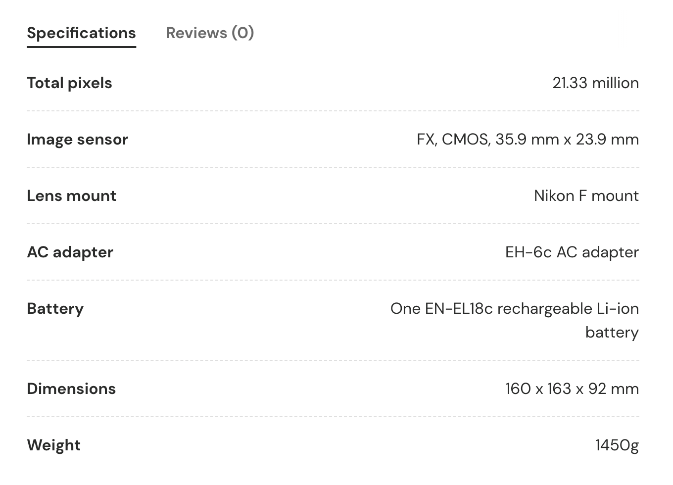 The products on your store may have custom data, such as height, weight, energy rating, warranty, etc, all of which is very useful for customers to see. This information can be displayed in the Specifications tab.