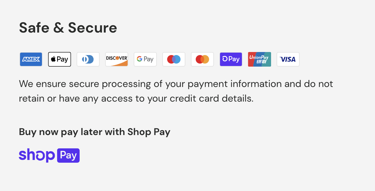 The payment icons displayed here will reflect those set in Admin > Settings > Payments.