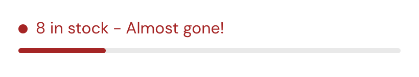 Under Urgency messages, a number of inputs have been included that can be used to set custom text to display when stock levels reach a particular level. The visibility of these messages can be set with the Show urgency message setting.